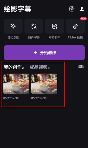 打开绘影字幕App,导入需要添加歌曲的视频文件。