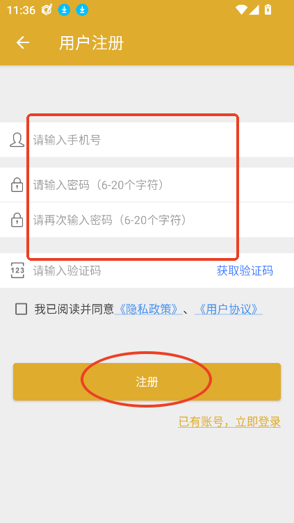 有账号,点击已有账号,立即登录,输入账号密码,点击登录即可