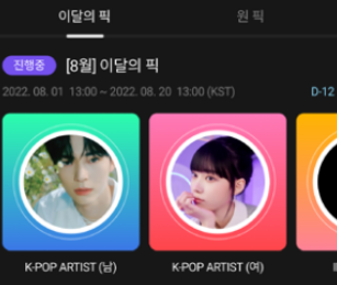 投票活动类型:有MonthlyPICK,即K-pop艺人和演员等的每月人气投票,还有1PICK,即针对各种主题的投票。