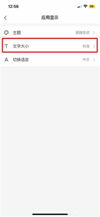3、找到文字大小选项打开。