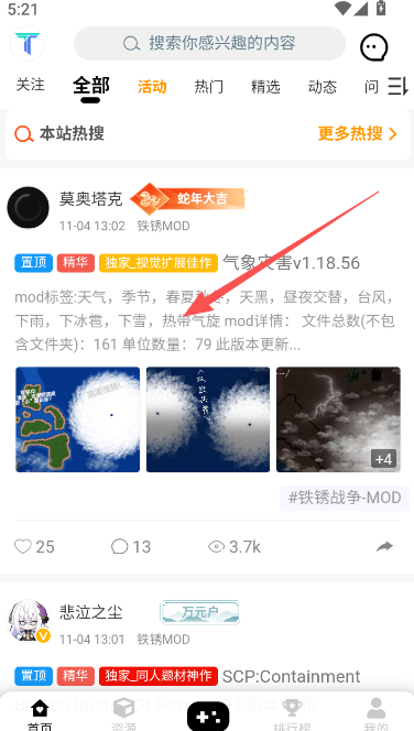 2、在首页或是资源版块找到自己要下载的MOD。