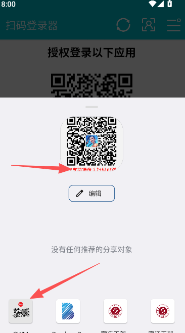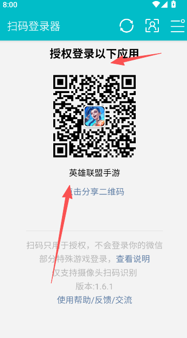 2、切换到扫码APP,出现二维码后点击分享给对方。