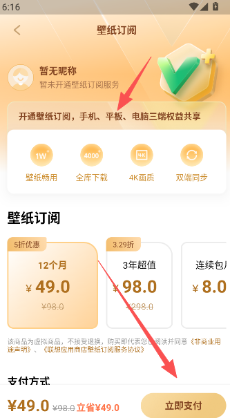 3、点击上方去开通,订阅专属壁纸服务。