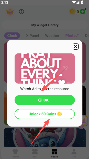 2、通过观看广告或是支付50金币的方式付费解锁。