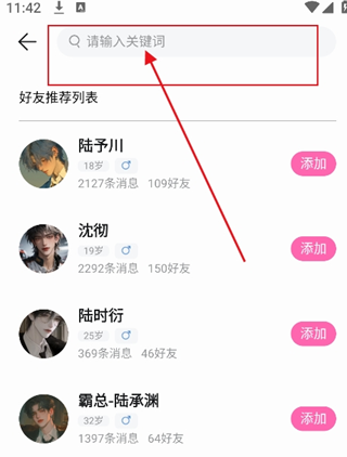 3、可以直接搜索框输入关键词,精准搜索好友