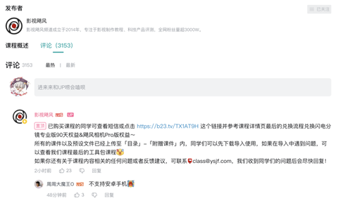 若你和我一样是在哔哩哔哩购买课程,只需进入课程页面,在评论区找到官方的最新评论,点击其中的兑换链接即可完成领取。