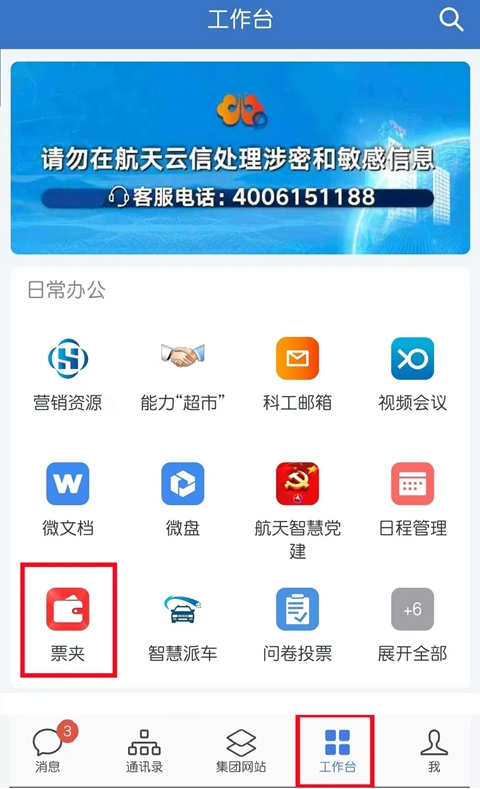 航天云信APP-工作台-日常办公-票夹