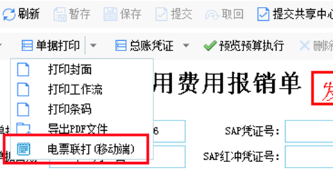 打开方式:共享平台-报账中心-某表单-单据打印-电票联打