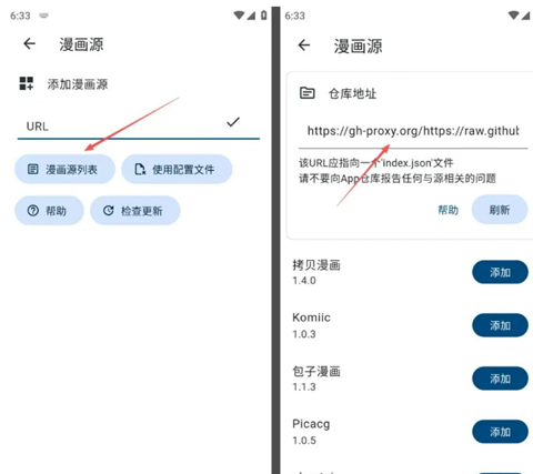 1、软件安装后只是一个壳子,非常纯净,使用前需要添加漫源才行,直接点击漫源,然后点击漫源列表(上面的URL不用填直接点),然后点击刷新按需要自己添加就可以了。