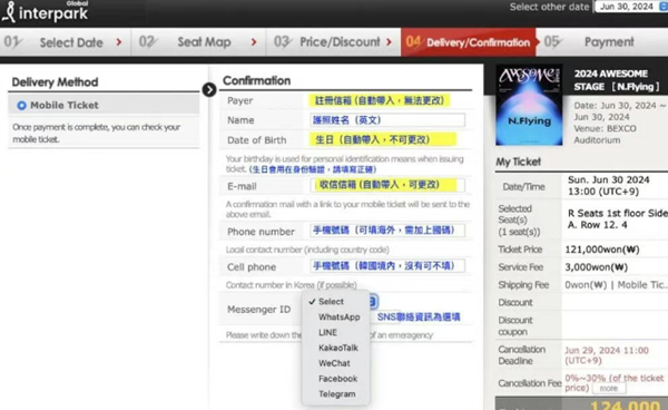 韩国电话没有的话可留白不填,没有影响,SNS 联络信息不填也可以继续购票,但有的话会建议可以补上,以备不时之需。