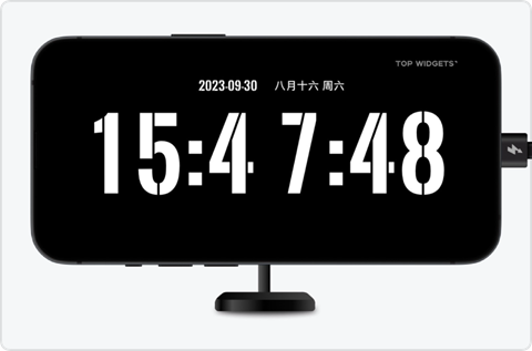这是iOS17系统新增的一个新功能,当iPhone充电并横向放置时,就会自动进入待机显示模式。在这个模式下可以显示小组件、时钟等内容。我们通过TopWidget万能小组件App来看看这个功能吧。