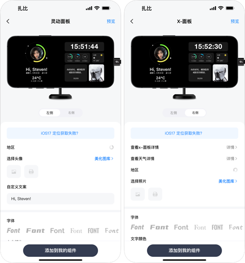 注意,待机显示画面是分为左右两个区域,在样式配置页面要分别配置左侧和右侧区域哦。配置完成后,点击「添加到我的组件」按钮。