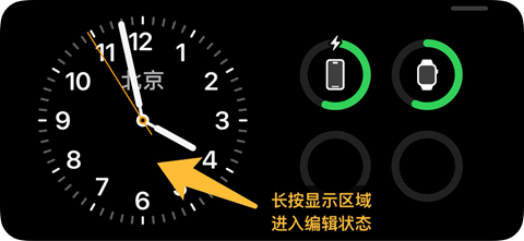 接着我们让iPhone充电并横屏放置。在待机显示状态下,长按左侧区域进入编辑状态。