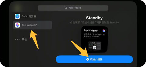 点击左上角的「+」按钮,找到TopWidget的小组件。点击后,再点击「添加小组件」。