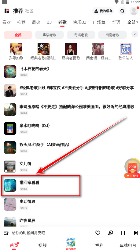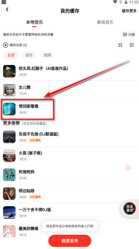 1.打开快音,找到并点击我们想要下载的歌曲。