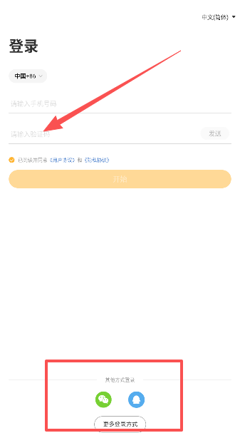 1、手机端登录点击验证码或是QQ微信等方式进入。