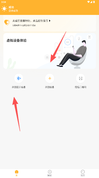 2、登录成功,在家的页面选择添加蓝牙设备或是普通设备。