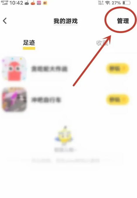 3.进入我的足迹页,点击“管理”图标。