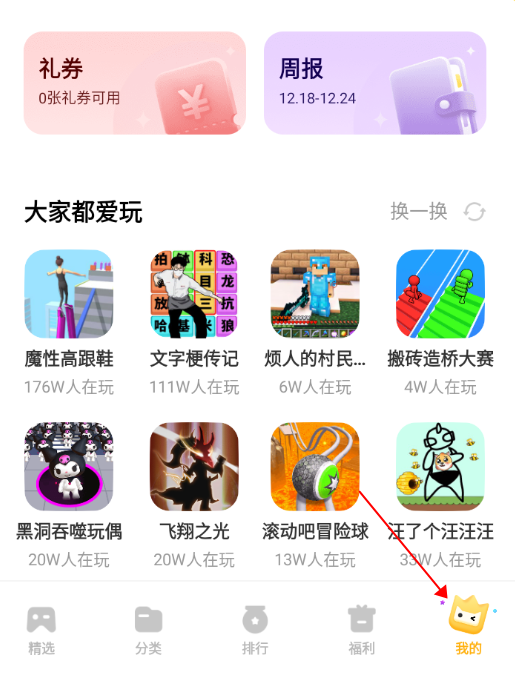 2.在我的页面找到我的游戏图标,点击查看更多。