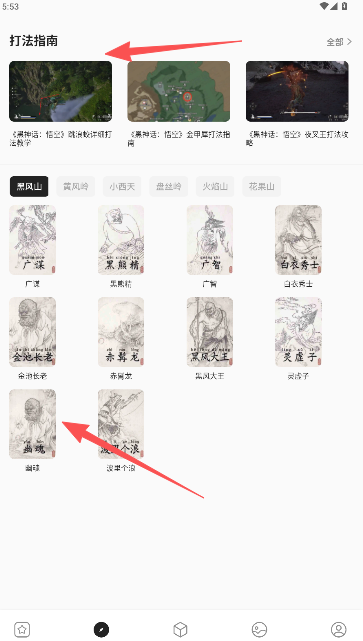 4、图鉴,主要展示了黑神话悟空系列的所有角色信息介绍,包括它的角色灵感来源等等,点击图片可查看详细的文字介绍。