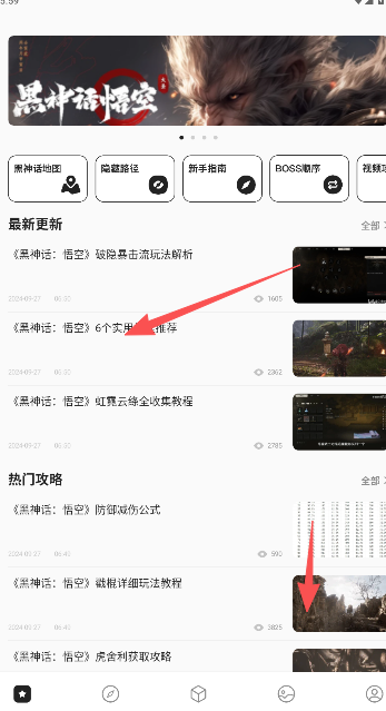 1、2344小游戏首页展示的最新更新的,基本都是包含有视频教程的黑神话游戏攻略部分。