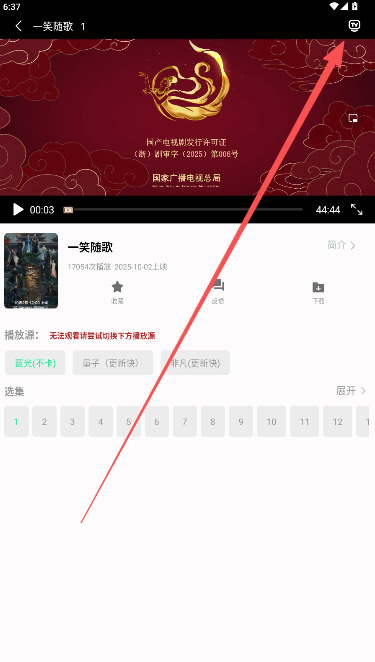 1、在视频播放详情页面内,点击右上方的tv图标。
