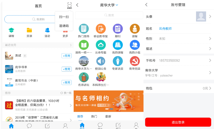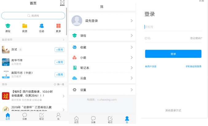 3、学习学校专业课程,进行小组讨论,查看本校通讯录。