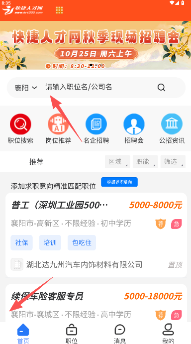 4、和使用其他招聘类找工作软件一样,按地区、推荐或是通过线上的大型招聘会寻求自己心仪的岗位目标。