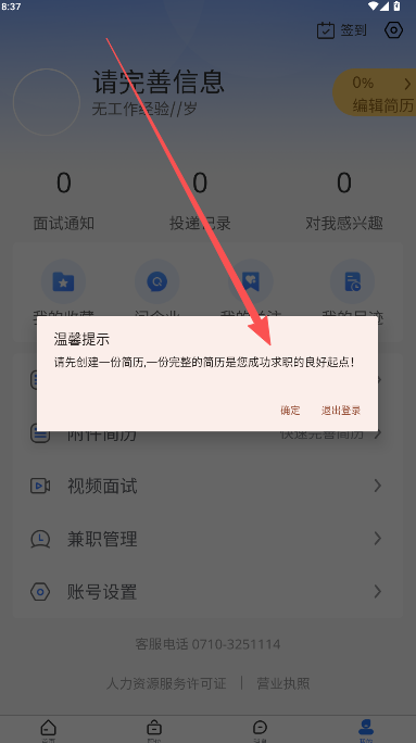 2、两种身份的使用方式大致相同,小编以个人求职者的用户界面为大家做实际操作和演示。