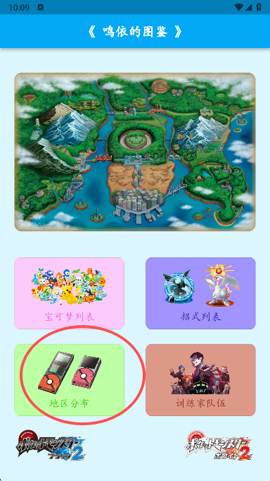 1、我们在首页可以浏览到基础功能,宝可梦列表,招式列表,地区分布,训练家队伍等等
