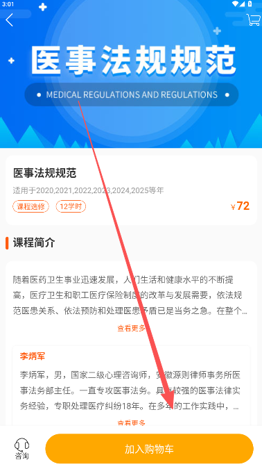 4、在课程简介部分查看了解,看它是否对你当前的技能提升有所帮助,有帮助的话就请加入购物车内。