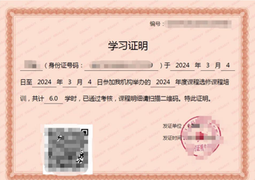 注意:待所有课程申请证明完成之后,在“证明档案”处截图学习证明,如图:(目前学 时证明处已添加二维码功能,学员用手机微信扫码即可查看具体的课程明细表,所以课程明 细表可自由选择是否上传)