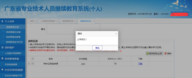 因目前广东学习网数据无法直接对接广东省专业技术人员继续教育管理系统,需要学员手动上传附件证明,具体上传流程如下: