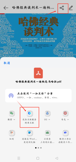 一:下拉顶部菜单,打开传输方手机的【OPPO互传功能】;