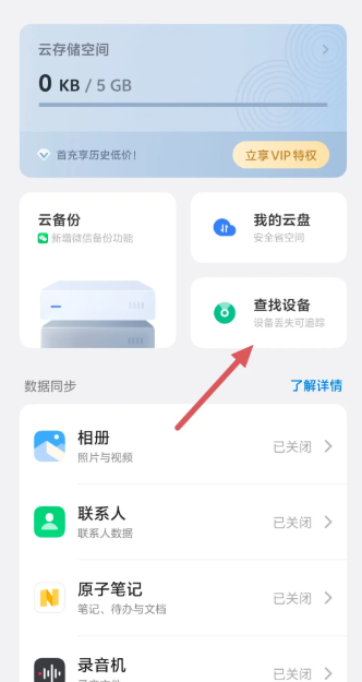 1、打开手机设置app,点击最上方的vivo账号选项,登录自己的vivo账号,找到“云服务”选项点击进入,就会看到vivo云服务界面,然后点击“查找设备”按钮,