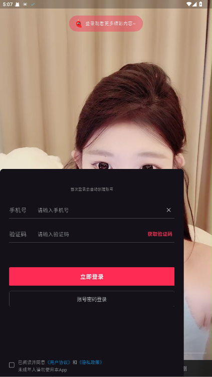 2、输入手机号获取验证码,立即登录