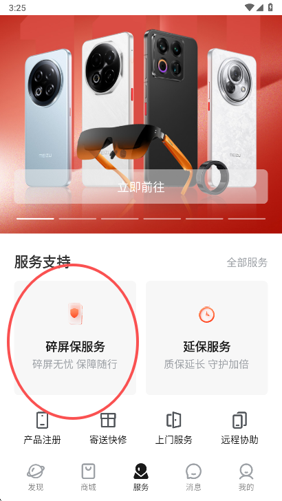 1、在服务版块,您可以看到碎屏保服务,点击进入