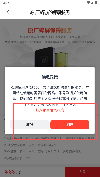 2、然后同意其隐私政策