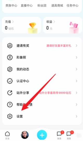 1、在喜弟app【我的】页面,找到“设置”,点击它。