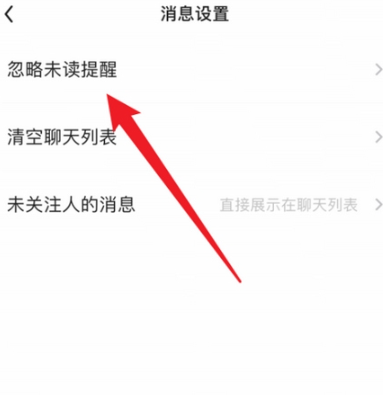 3、进入到消息设置页面后,点击”忽略未读提醒“按钮。