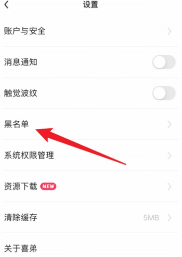 3、打开黑名单页面后,即可查看到拉黑名单。