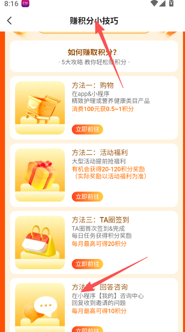 3、按照客户端内赚积分小积分前往参与任务获得积分。