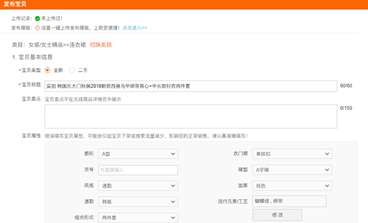 3、若已经订购一键上传,系统自动跳转到填写宝贝信息页面,可以设定宝贝发布模版。