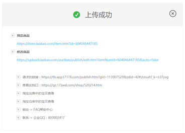 6、上传宝贝成功后,您可以点击“预览商品”查看您上传到淘宝的宝贝,或者点击“修改商品”修改您上传到淘宝的宝贝。