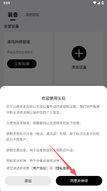 1、在本站下载安装头玩app打开,同意头玩app的用户协议