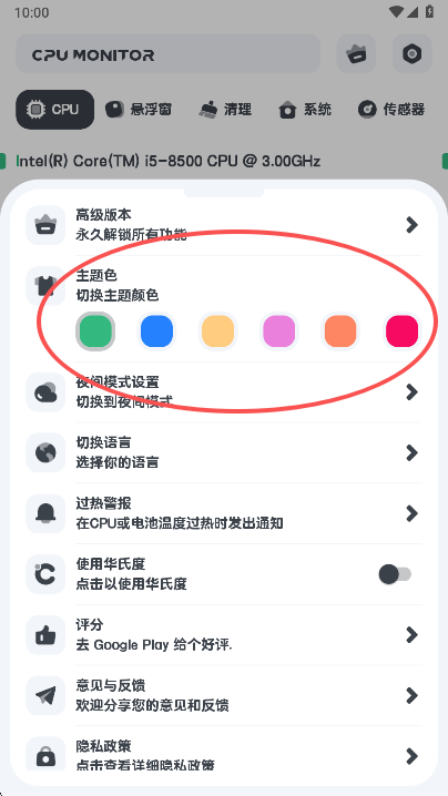 CPU 监测在功能强大同时,也是一款非常漂亮的软件,支持多主题切换,你可以选择自己喜欢的主题颜色。