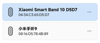 2、比如用小米账号登录上后,它自动获取到了,我在用的小米手环9和小米手环10陶瓷版