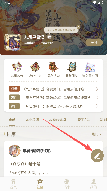 4、在社区版块,您可以自行进行发帖与游戏玩家交流