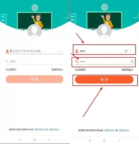 (3)输入账号学乐账号和密码,直接点击“登录”按钮。千万不要点“班级码加入”,否则会出现学生名单重复情况。