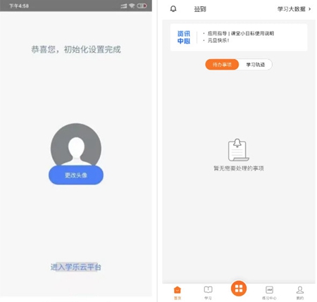 (5)点击“进入学乐云平台”,完成学生端账号初始化。